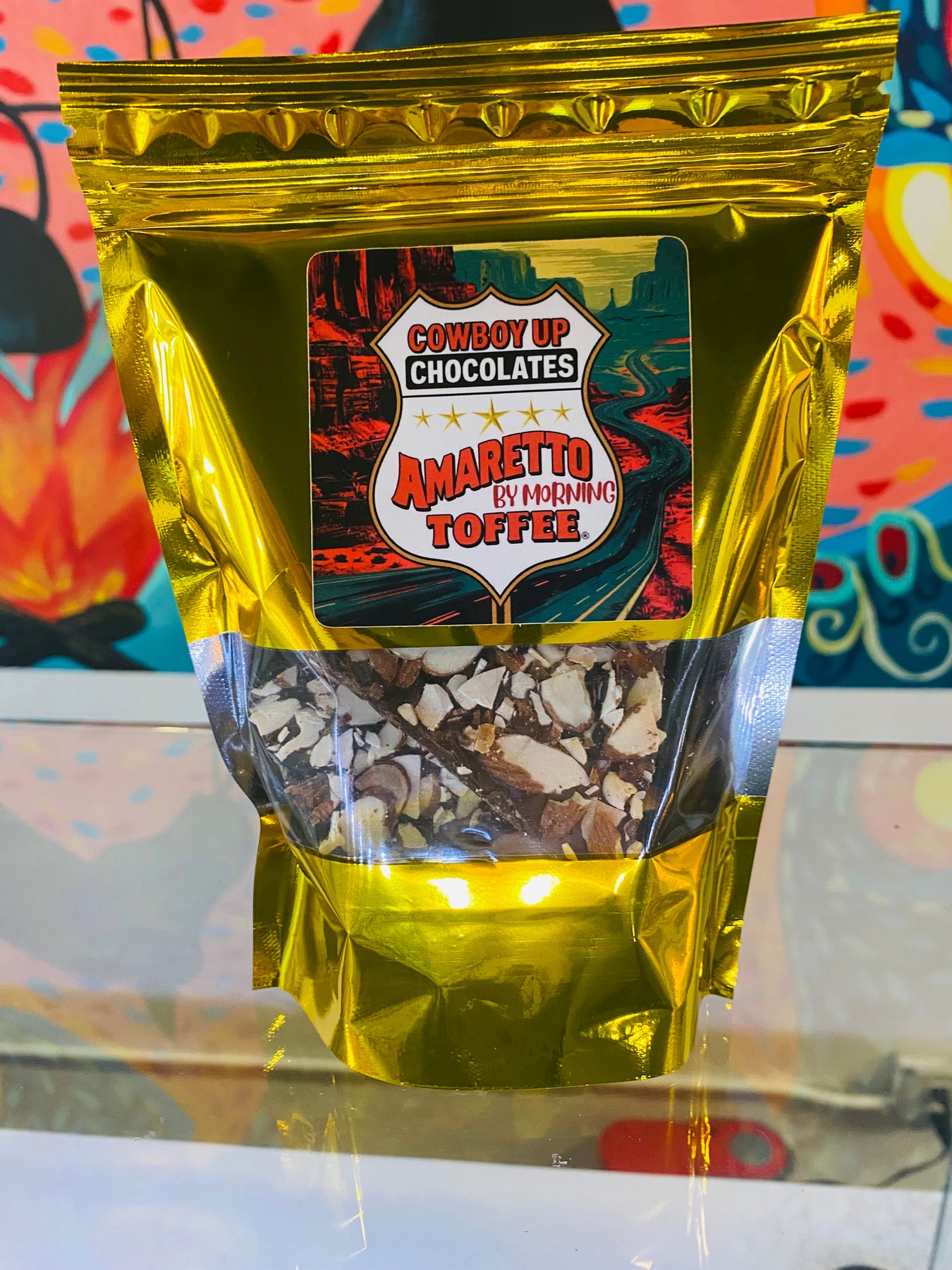 By George, we’re shooting straight with you when we say this is delicious, toasted almond toffee. It will make your taste buds want to sing and if you buy a bag of toffee in our store, it will be all gone by the time you get to “Amaretto by Morning”™ (toffee).
